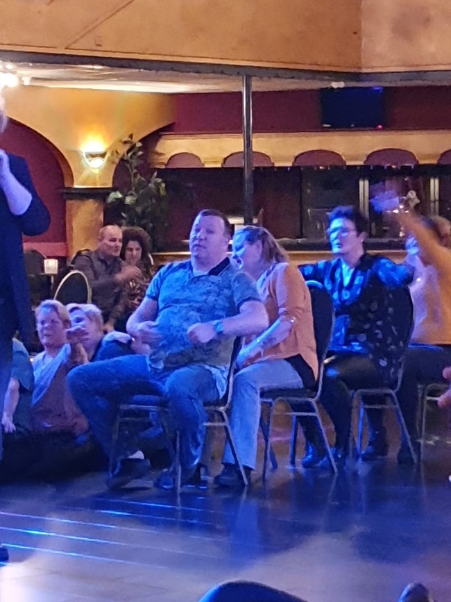Het driedaagse bezoek is ronduit goed bevallen voor zowel bestuur als leden, we zagen er wel tegen op om met de hele bups opperdan te gaan, omdat toch vrijwel iedereen met het plaatje Preston Palace in zijn hoofd zat. Maar bij aankomst werden we zo gastvrij en vriendelijk ontvangen, buiten werden we al opgewacht door de dames van de receptie, met de kamersleutels, ze riepen bv Fam Kramer toen kwamen er 5 stellen Kramer naar voren, fam de Boer ja dan stonden er ook ineens een stuk of 7 families voor hun neus, in Preston Palace moesten we wachten tot 3 uur, en dan moesten Marten en Hendrik de sleutels zelf doen. Na de sleutel kwestie konden we door lopen naar het buffet dat klaar stond, nadat we voorzien waren van een armbandje, de kleur viel nog mee onze club werd voorzien van paars, ik zei nog tegen Breure stel je voor dat we roze om hadden gekregen, dan hadden de andere bezoekers nog gedacht dat we van de klets zijn. Het middag buffet klonk als een klok, goed verzorgd tot in de puntjes, er was een hele afdeling voor de 27 mc vereniging afgezet, compleet verzorgd met naambordjes op de tafel. Dus elke keer als we gingen eten was er ruimte zat voor ons. De bedoeling van het middag eten was volgens mij in den vreemde altijd brood eten met bijvoorbeeld een gekookt eitje, maar wat hier stond was niet normaal, tjonge jonge, ik zei tegen onze tafel gasten; dat je wel een gaatje voor vanavond overlaat. Ballen gehakt, warme worsten enz. na het buffet even de handen op de buik heerlijk knippien op de kamer. Prachtige kamer met ruime douche gelegenheid, alles aanwezig .